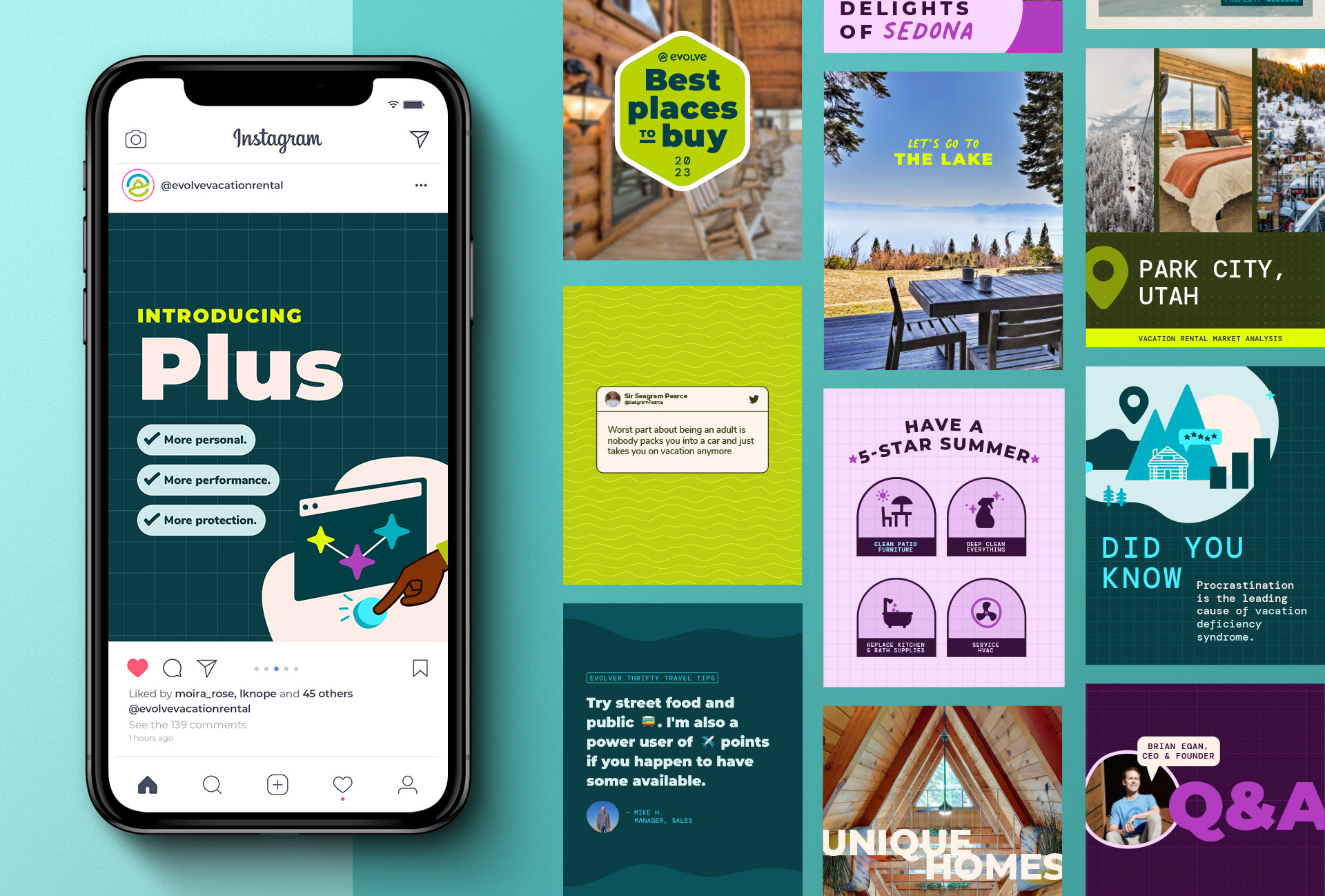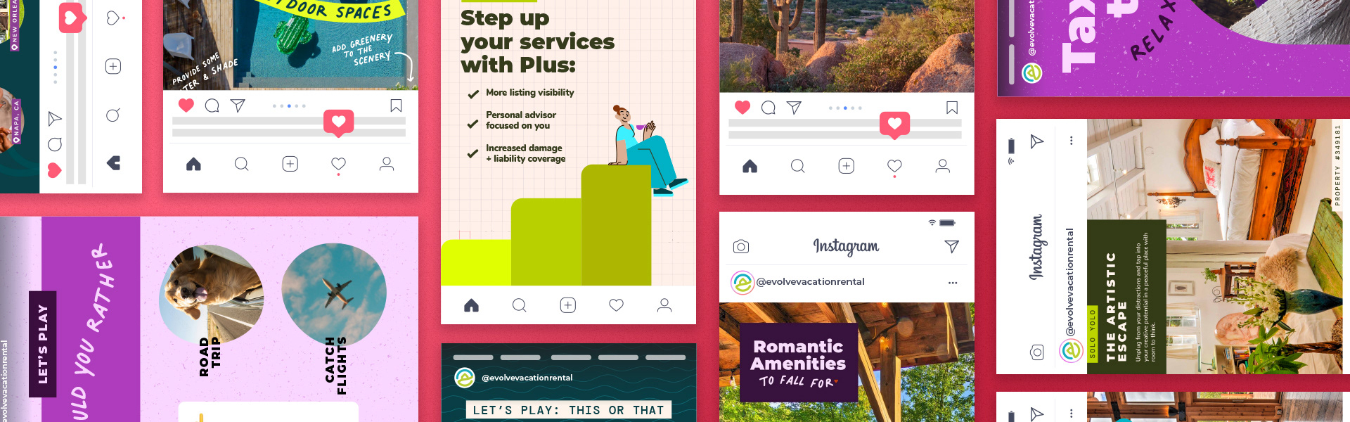 In late 2021, the Creative Team at Evolve became fully immersed in the social media process, contributing to a 57% year-over-year increase in reach. I collaborated closely with the Social Media and Content Marketing teams to produce data-informed visuals that resonated with audiences. To improve efficiency and consistency, I also built a robust template system — including a large internal library for the Creative team and easy-to-use, plug-and-play templates for the Social Media team.